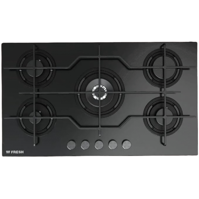 موقد مسطح ستانلس ستيل بلت ان من فريش HAFR90CMBC1/BR، 5 شعلات غاز، 60 × 90 سم – اسود وذهبي