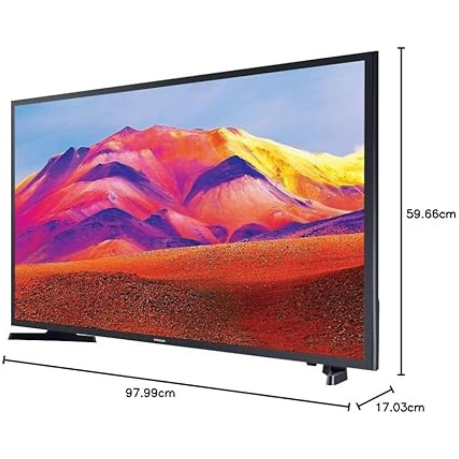 Experience immersive viewing with the Samsung 43-inch Full HD Smart LED TV, featuring a vibrant 1080p display and HDR10 technology for enhanced color and contrast. Powered by a 2.1 channel speaker system with 20W output, it delivers rich, clear audio. Enjoy seamless connectivity with 2 HDMI ports, 1 USB 3. Measuring 97.99 cm in width, 57.19 cm in height, and 7.73 cm in depth, this sleek TV sits perfectly on your table or wall mount. With a 50Hz refresh rate and 50Hz motion enhancement technology, you’ll enjoy smooth, blur-free motion in your favorite movies and games. The Samsung 43-inch Full HD Smart LED TV combines stunning visuals, powerful audio, and smart functionality for an exceptional home entertainment experience.