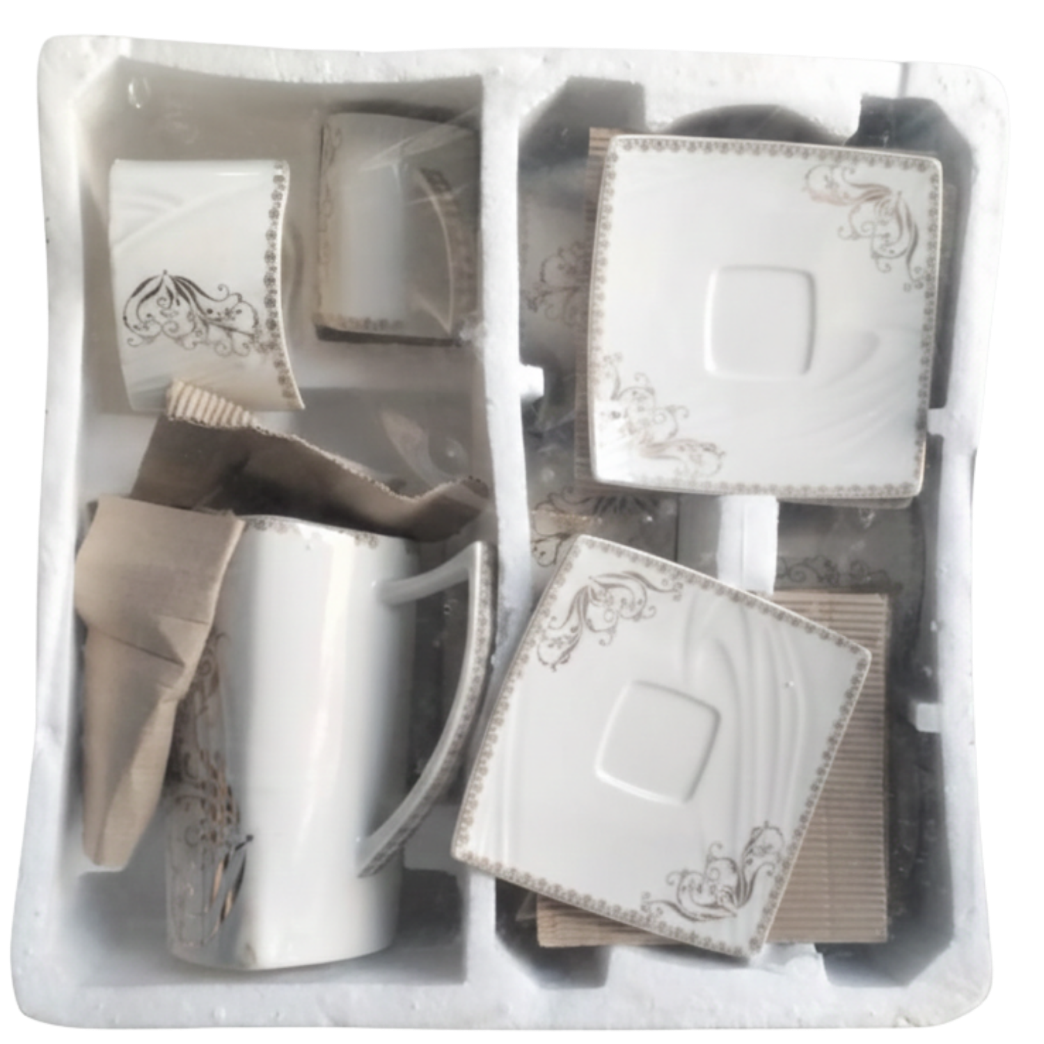 • 6 Tea Cups: Features a modern wide-rim design with a thin, elegant gold handle.