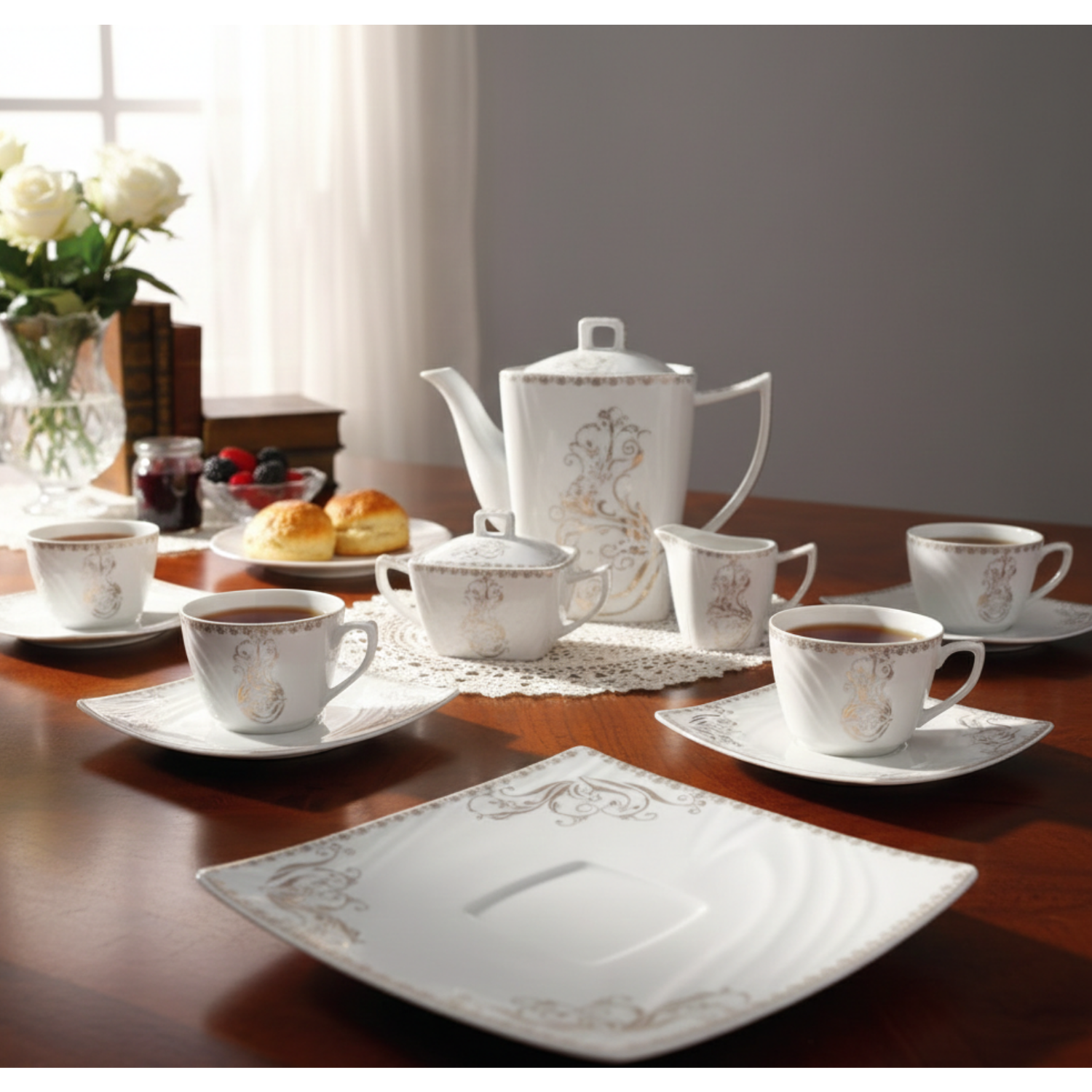 • Sugar Bowl with Lid (2 Pieces): Perfectly sized to match the modern aesthetic of the set.