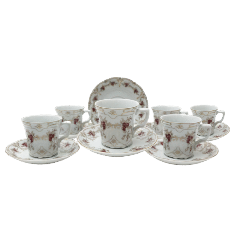 6 Saucers: Perfectly matched to the cup designs with elegant edges.