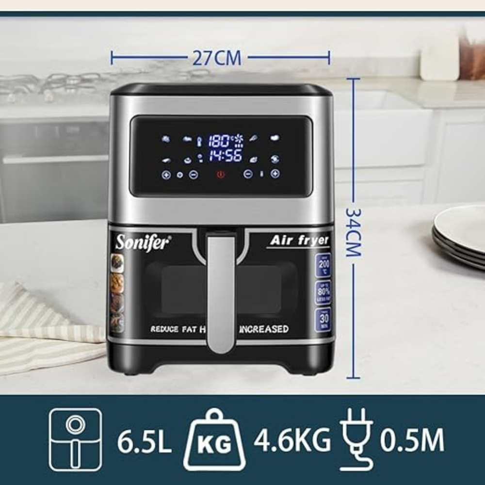 Sonifer SF-1028 LED Touch Control Screen Electric Air Fryer, 6.5 Liter Capacity