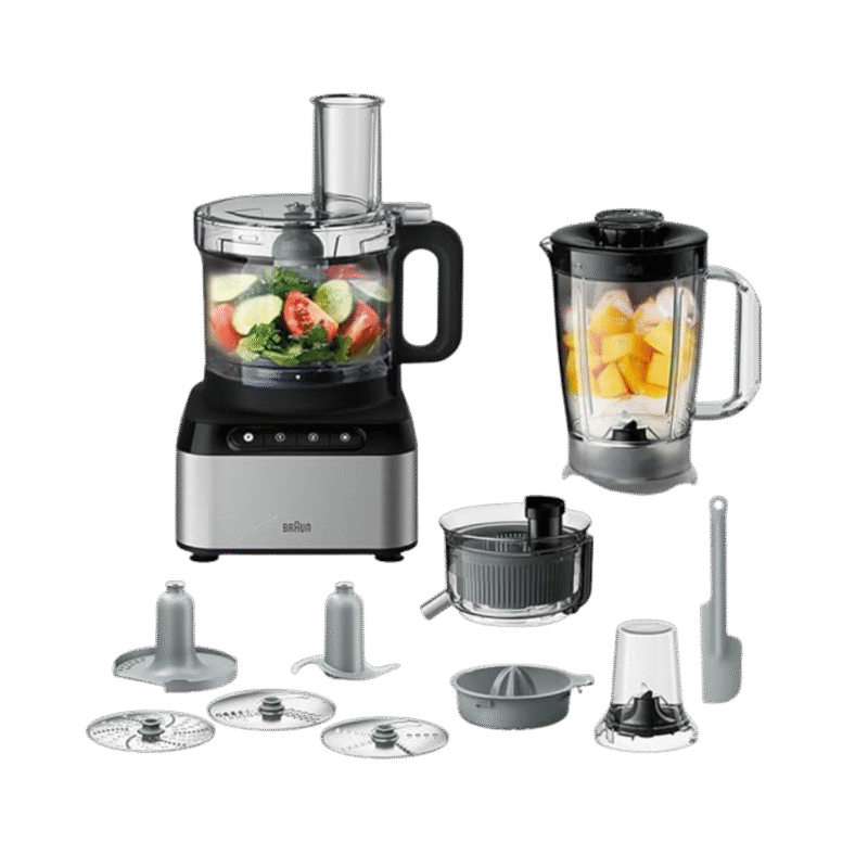 Be the first to review “Braun Food Processor 8 in 1 System, 750 Watts, 2.1 L Bowl Capacity, 1.8 L Blender Capacity, 2 Speed Button and Pulse, Chop, Slice, Grate, Whisk & Puree – FP 0132 White” Cancel reply