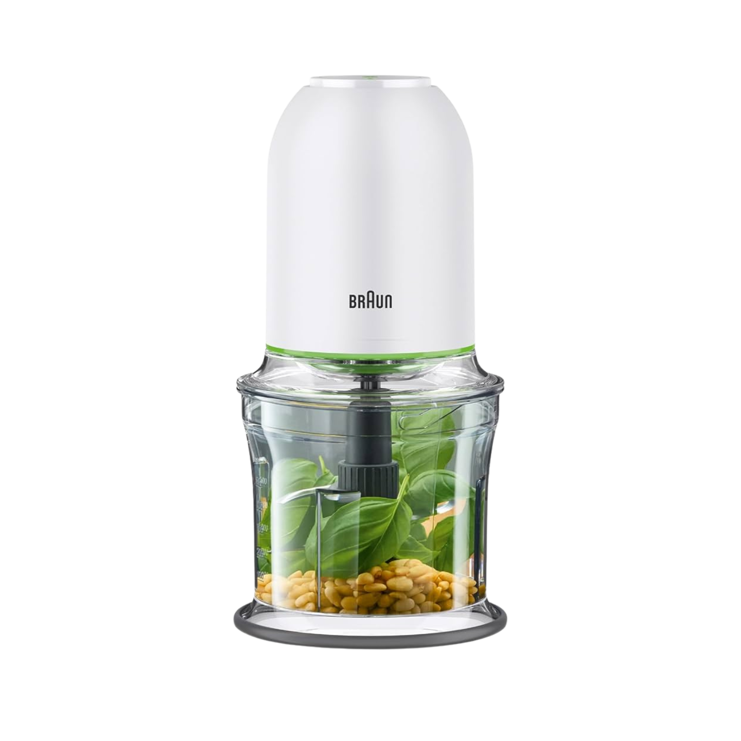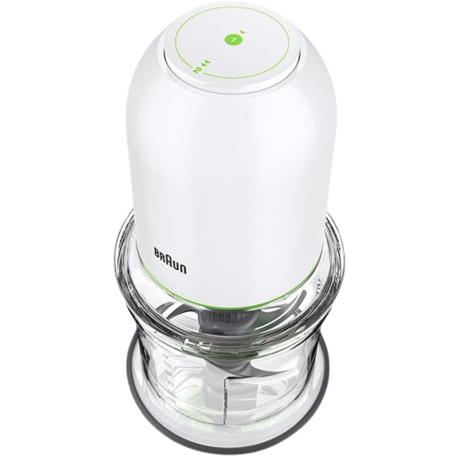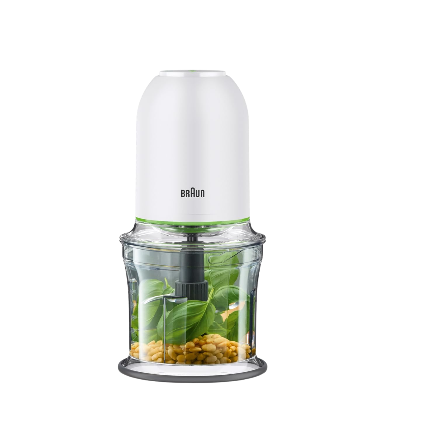 Wir präsentieren den Braun Chopper CH3011, eine kulinarische Kraft, die Ihre Küche revolutionieren soll. Ausgestattet mit der QuadBlade-Technologie verfügt dieses Gerät über vierschichtige Edelstahlklingen, die schnelle und präzise Schneidkapazitäten bieten und Doppelklingensysteme übertrifft und 25 % mehr Zutaten verarbeitet. Entspannen Sie sich in dem Wissen, dass alle Schüsseln und Zubehrmaterialien, die mit Lebensmitteln in Kontakt kommen, BPA-frei sind und Ihre Gesundheit und Ihr Wohlbefinden im Vordergrund stehen. Mit seiner vielseitigen Dual-Speed-Funktionalität haben Sie die Flexibilität, die Mixleistung an Ihre kulinarischen Bedürfnisse anzupassen. Zerkleinert Eis mühelos perfekt und verleiht Ihren Lieblingsgetränken einen erfrischenden Touch. Verarbeiten Sie die Zutaten nahtlos mit der ergonomischen One-Touch-Steuerung, die Ihre Kochaufgaben vereinfacht. Bei Nichtgebrauch sorgt das aufgeräumte Kabel für eine ordentliche und organisierte Kücheneinrichtung. Angetrieben von einem robusten 500-Watt-Motor und einem praktischen Fassungsvermgen von 500 ml bietet der Braun Chopper CH3011 auergewhnliche Leistung und Komfort für alle Ihre kulinarischen Abenteuer. Aktualisieren Sie Ihr Kocherlebnis mit diesem auergewhnlichen Gerät noch heute.
