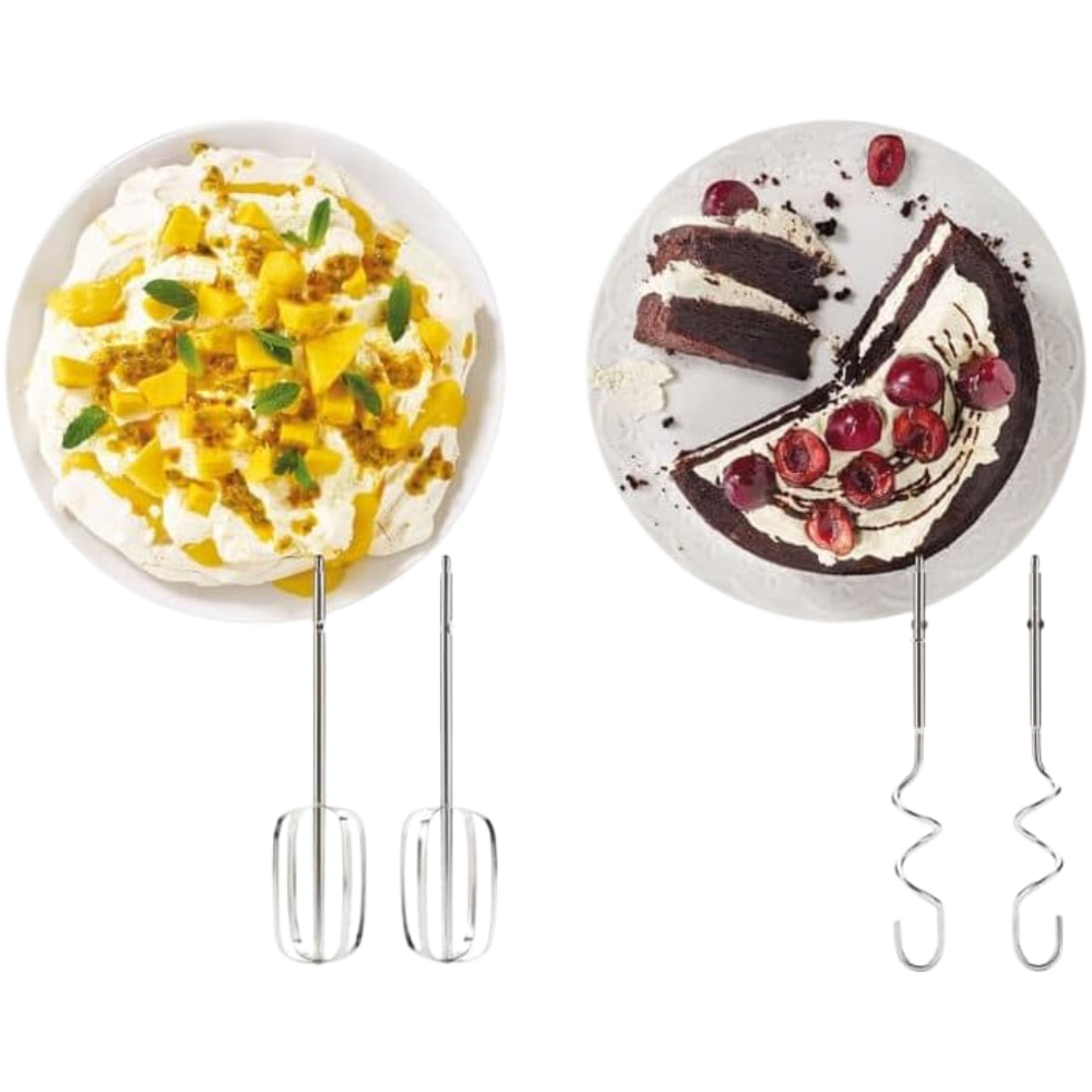 - 2 FUNCTIONS: The mixer includes two whisk rods and two kneading hooks. Its shape allows you to achieve optimal results in less time