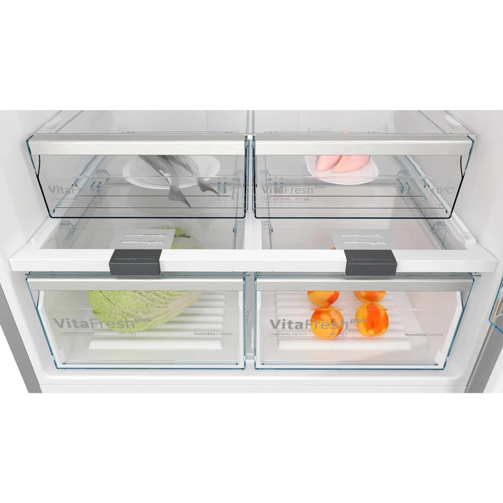 ثلاجة قائمة مع فريزر علوي، سلسلة 4، 186×75 سم، تنظيف اينوكس السهل KDN76XI3E8، من بوش، فضي