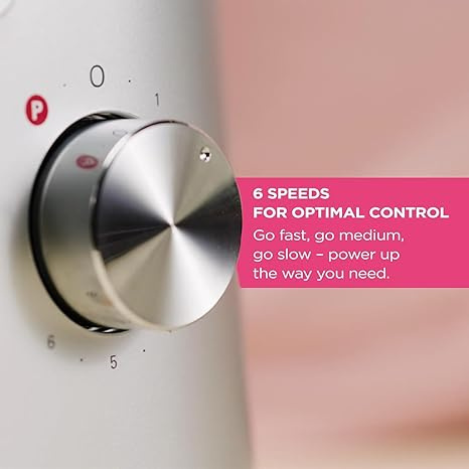 - التحكم في السرعة: يحتوي هذا العجان على محرك قوي بقدرة 1000 وات من المؤكد أنه سيوفر سنوات عديدة من المتانة والموثوقية مع قوة عالية وتحكم في السرعة لخلط المكونات بشكل مثالي للطهي أو الخبز.