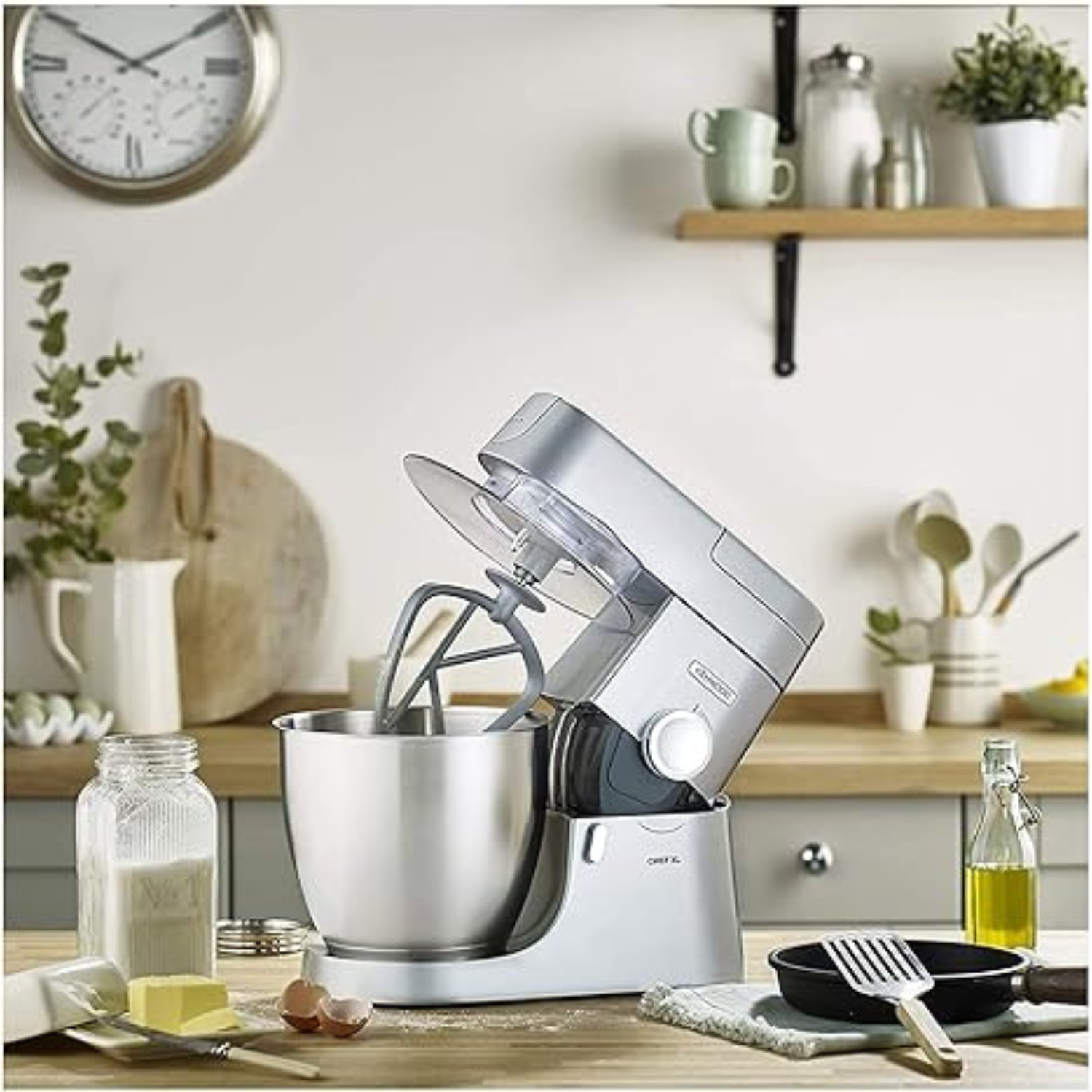 - يأتي جهاز شيف اكس ال KVL4320S من كينوود مع محرك 1200 وات ووعاء بسعة 6.7 لتر لدفعات أكبر واستيعاب أحمال أثقل حجمًا للعجين، مصمم ليدوم ويعمل على إعداد الطعام بشكل خفيف