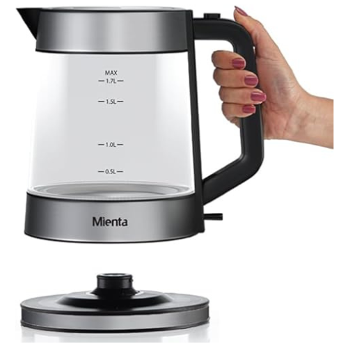 - غلاية لاسلكية بقاعدة دوارة 360 درجة بقدرة 2200 وات وسعة 1.7 لتر مصنوعة من زجاج مقوى عالي القوة ومقاوم للحرارة، مزودة بعنصر تسخين مخفي وفلتر مضاد للتكلس قابل للإزالة وزرار لفتح الغطاء لضمان استخدام آمن، مع مفتاح تشغيل وإيقاف ومؤشر لمعرفة مستوى المياه