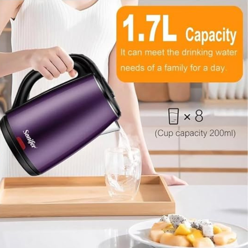 - هيكل عالي الجودة: صُنعت هذه الغلاية الكهربائية من سونيفر من مواد متينة، لتوفر أداءً وموثوقية طويلة الأمد، وتم تصميمها لتحمل الاستخدام اليومي في أي بيئة مطبخ.