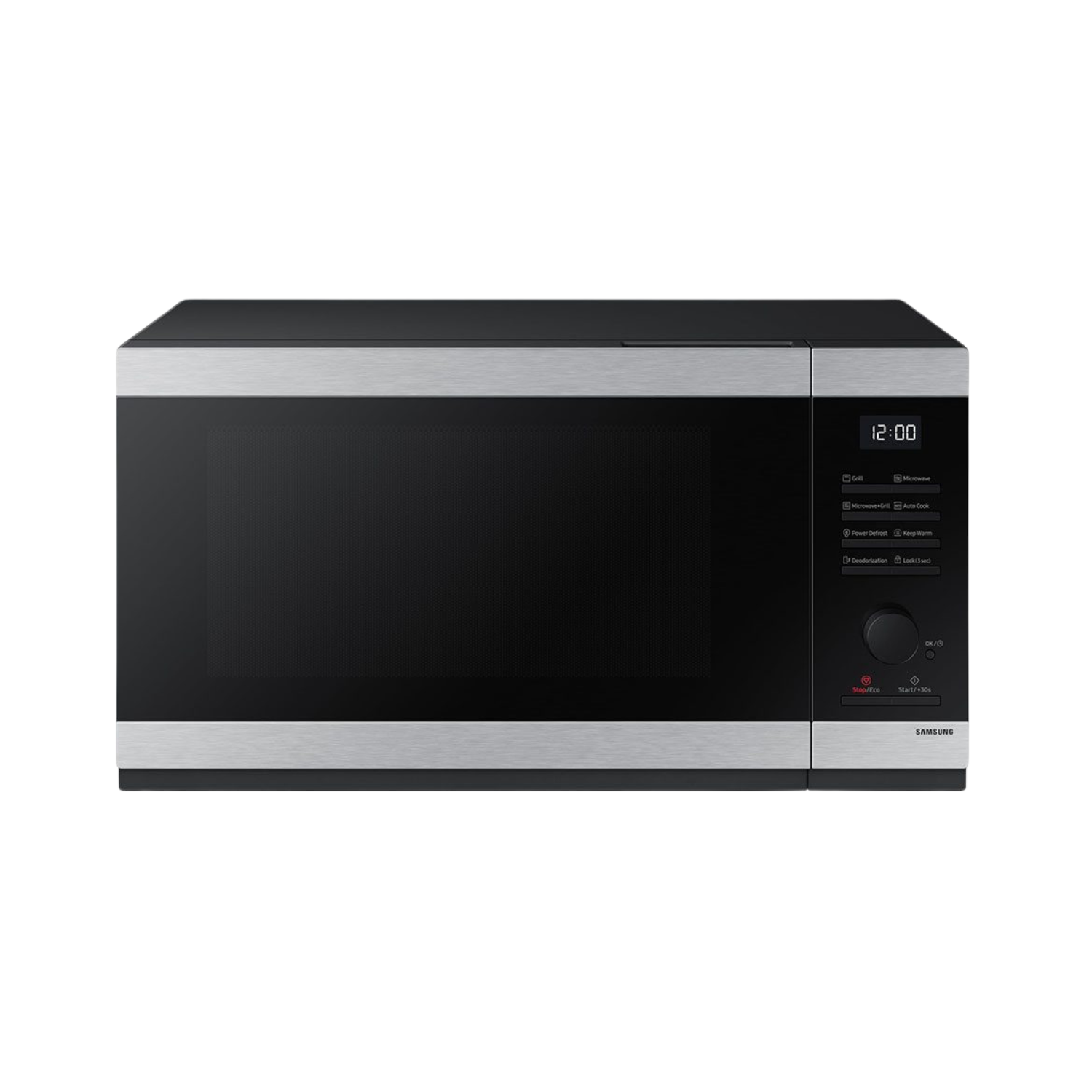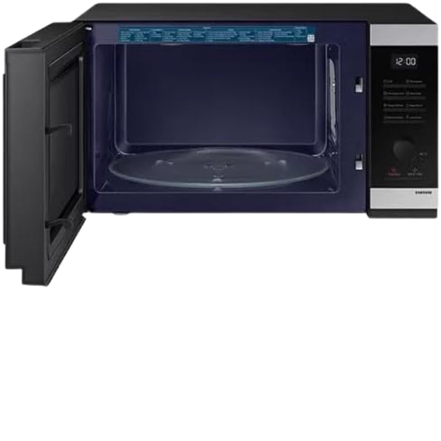 سامسونج فرن ميكروويف بسعة 40 لتر، لون الباب والخزانة باللون الأسود، شاشة عرض LED بيضاء ومادة تجويف مينا السيراميك.