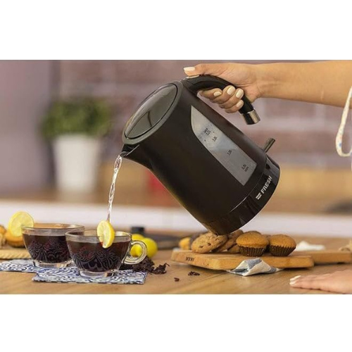 غلاية فريش البلاستيكية، 2200 وات، 1.7 لتر، أسود -Epk17051P هي غلاية أنيقة وفعالة مثالية لصنع المشروبات الساخنة في المنزل. مع طاقة 2200 وات، يمكنها غلي الماء بسرعة وسهولة. تتميز الغلاية بجزء خارجي أسود أنيق مع هيكل بلاستيكي شفاف لسهولة رؤية مستوى الماء. كما أنه يحتوي على عدد من الميزات المريحة، بما في ذلك منظم الحرارة مع مستشعري أمان ومفتاح أوتوماتيكي وحماية من الغليان الجاف وقاعدة لاسلكية. سواء كنت تصنع كوبًا من الشاي أو القهوة أو الشوكولاتة الساخنة، فإن غلاية فريش البلاستيكية، 2200 وات، 1.7 لتر، أسود -Epk17051P هي خيار رائع. فعالة وسهلة الاستخدام: