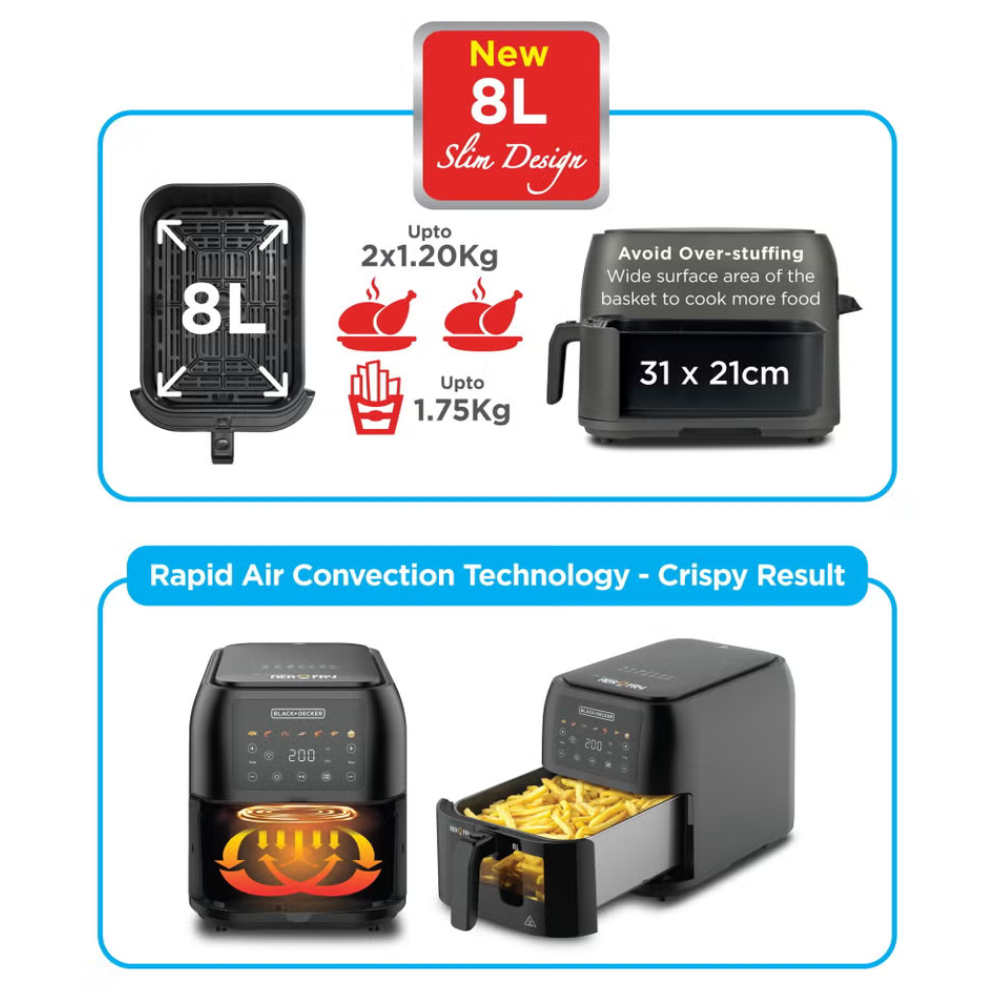 قلاية هوائية بلاك اند ديكر درج شفاف سعة 8 لتر – طاقة 1700 وات SAF80W-B5