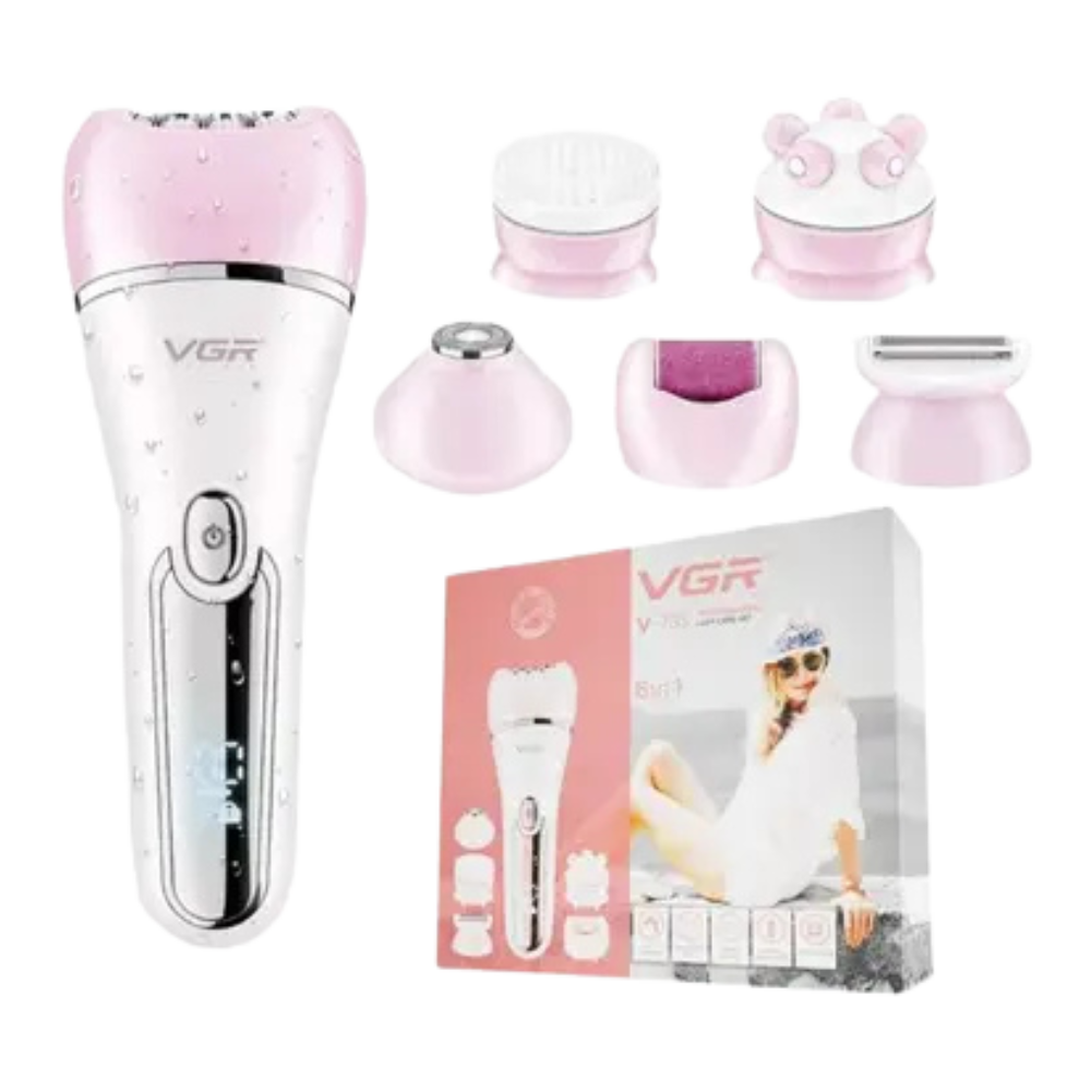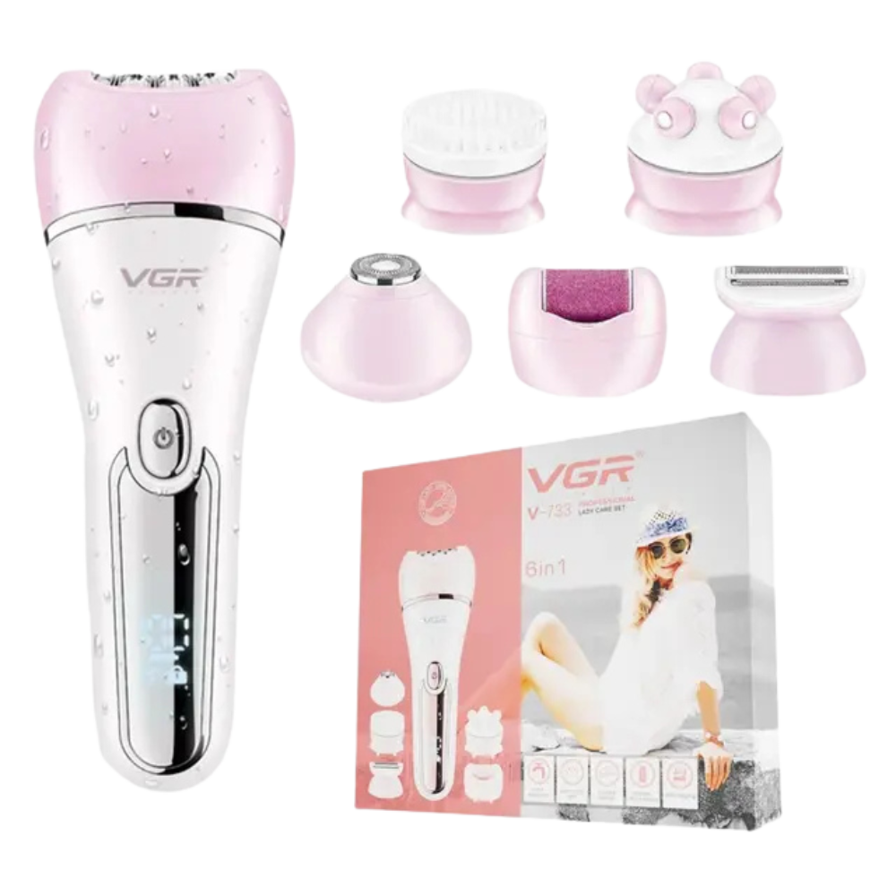- البراند: في جي ار النوع: ماكينة إزالة شعر مصدر الطاقة: بطارية قابلة لإعادة الشحن أهم المميزات: سرعتان- شاشة LED ديجيتال- البطارية: سعة 600 مللي أمبير- تكفي مرة الشحن تشغيل الماكينة مدة 90 دقيقة- منفذ USB للشحن- الملحقات: رأس تدليك، رأس إزالة شعر الأنف والأذن، رأس إزالة الشعر، رأس إزالة طبقات الجلد الميت، رأس تنظيف الوجه، ورأس حلاقة، كابل شحن رقم الموديل: V-733