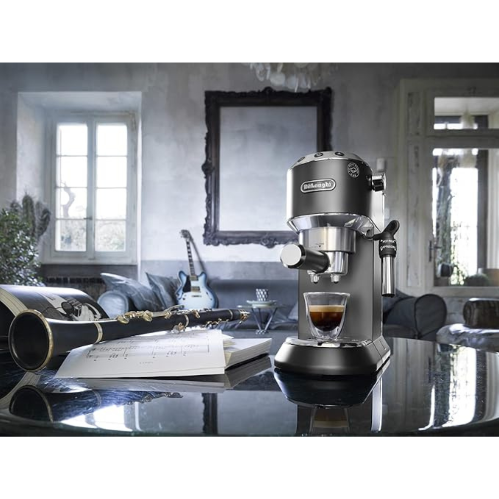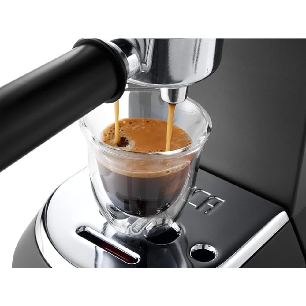 جهاز De’Longhi Dedica EC685 هو ماكينة قهوة اسبريسو صغيرة الحجم وأنيقة. تتميز بضغط مضخة يصل إلى 15 بار ونظام تسخين Thermoblock، مما يسمح لها بتسخين المياه بسرعة لتحضير قهوة عالية الجودة. يمكنها تحضير الاسبريسو والكابتشينو واللاتيه، كما أنها مزودة بعصا تبخير قابلة للتعديل لرغوة الحليب. بالإضافة إلى ذلك، يمكن استخدامها مع القهوة المطحونة .