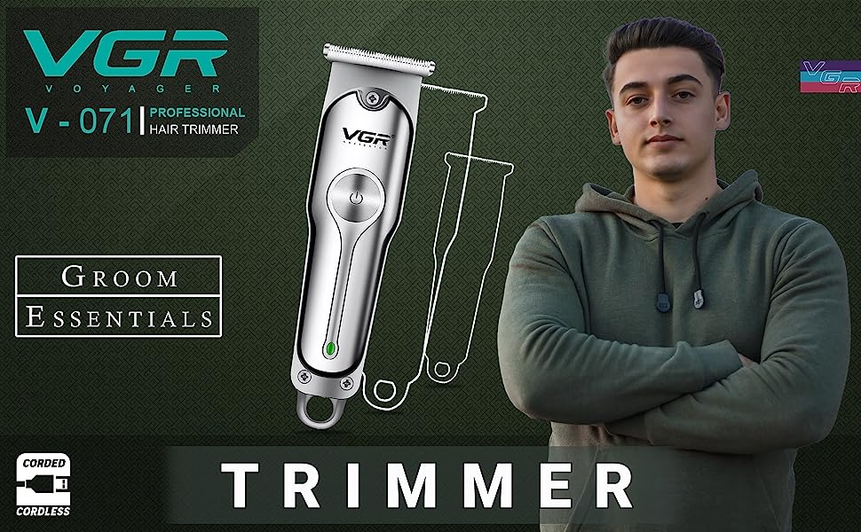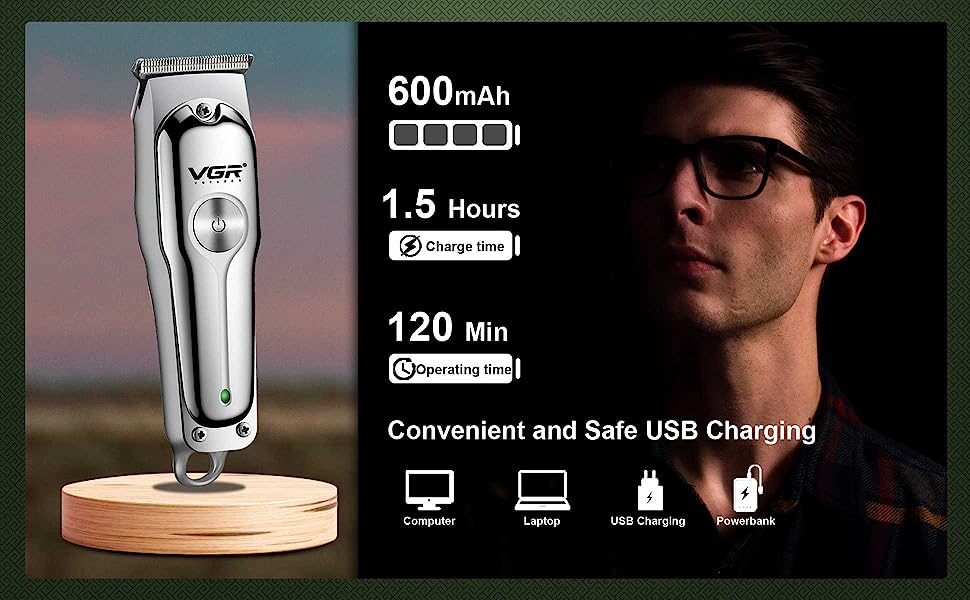 ماكينة حلاقة الشعر احترافية لاسلكية للرجال من في جي ار، وقت التشغيل، ماكينة حلاقة حتى 120 دقيقة مع 3 أمشاط توجيه لون فضي، قياسية