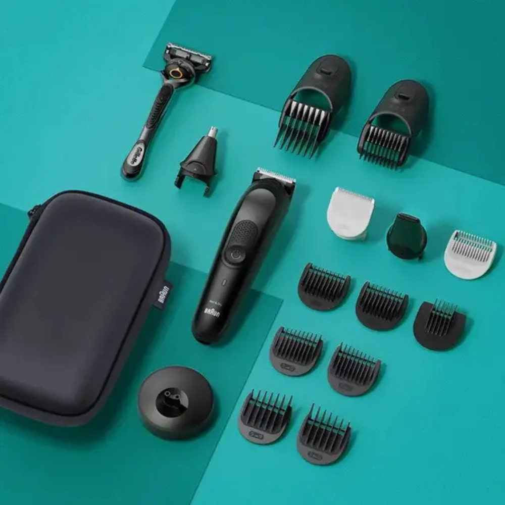 البراند: براون النوع: ماكينة حلاقة متعددة الوظائف مصدر الطاقة: بطارية أهم المميزات: - طقم 16 في 1 مصمم لتشذيب شعر اللحية والأنف والأذن وحلاقة شعر الرأس والجسم بأكمله - تتميز ماكينة الحلاقة بشفرة حادة ProBlade مصممة لتحقيق أداء متميز في الحلاقة مع كل حركة حتى في الأماكن الصعبة - تقنية الاستشعار الاوتوماتيكي (AutoSense) والتي تتكيف مع كثافة الشعر للحصول على نتائج مذهلة عند استخدامها مع أي نوع شعر وأي طول وسماكة - مدة الاستخدام 100 دقيقة - تصميم مقاوم للمياه - الملحقات: مشط (3-11 ملم)، مشط (11-21 ملم)، رأس لتشذيب شعر الجسم، رأس لإزالة شعر المناطق الحساسة، رأس لتشذيب شعر الأنف والأذن، رأس تشذيب دقيقة، 2 مشط لتقصير طول اللحية تدريجيا، 2 مشط لتقصير الشعر، مشط 1 ملم ومشط 2 ملم للقصات الثابتة، مشط لشعر الحاجب، علبة منظمة، قاعدة للشحن، ماكينة حلاقة جيليت بروجلايد الموديل: MGK74707