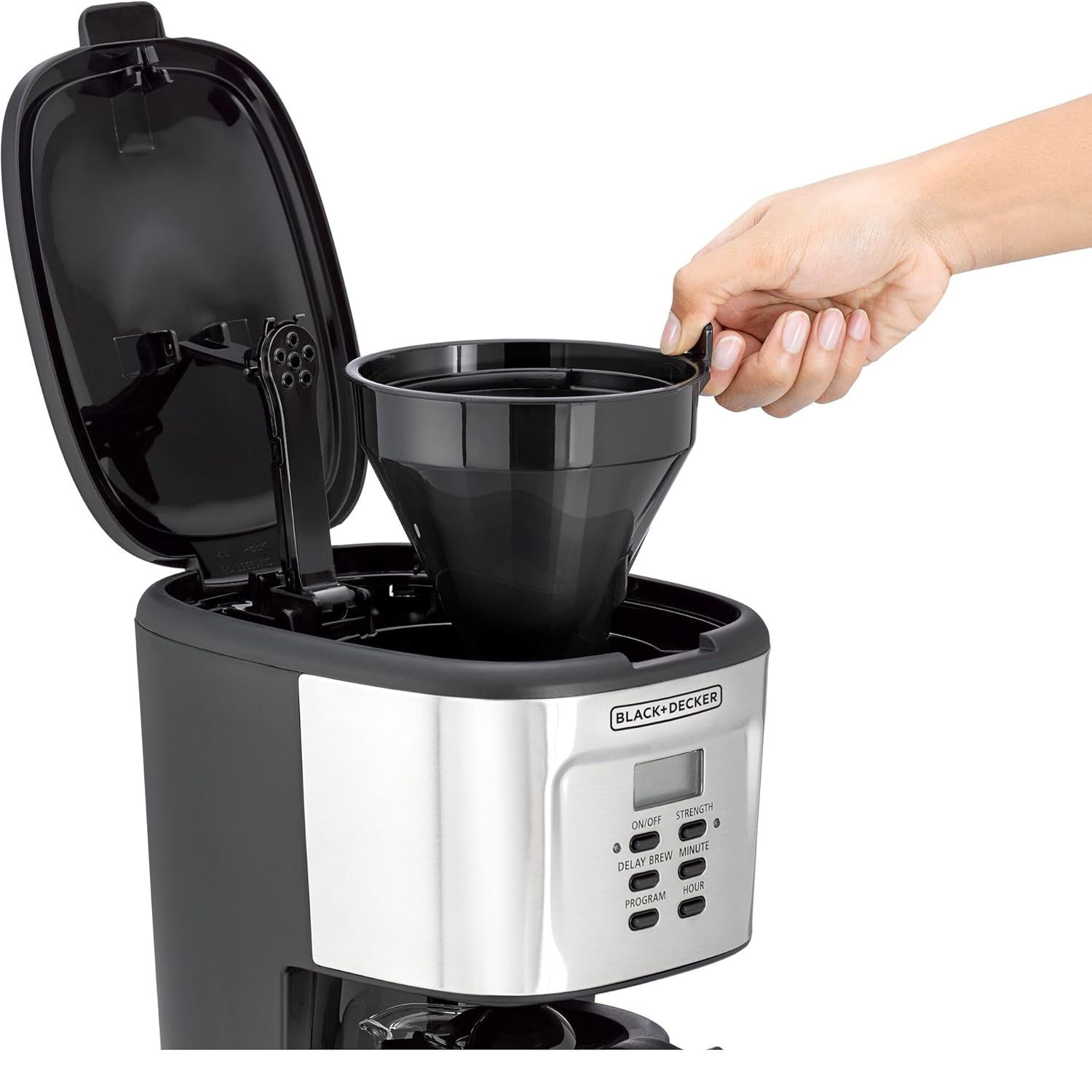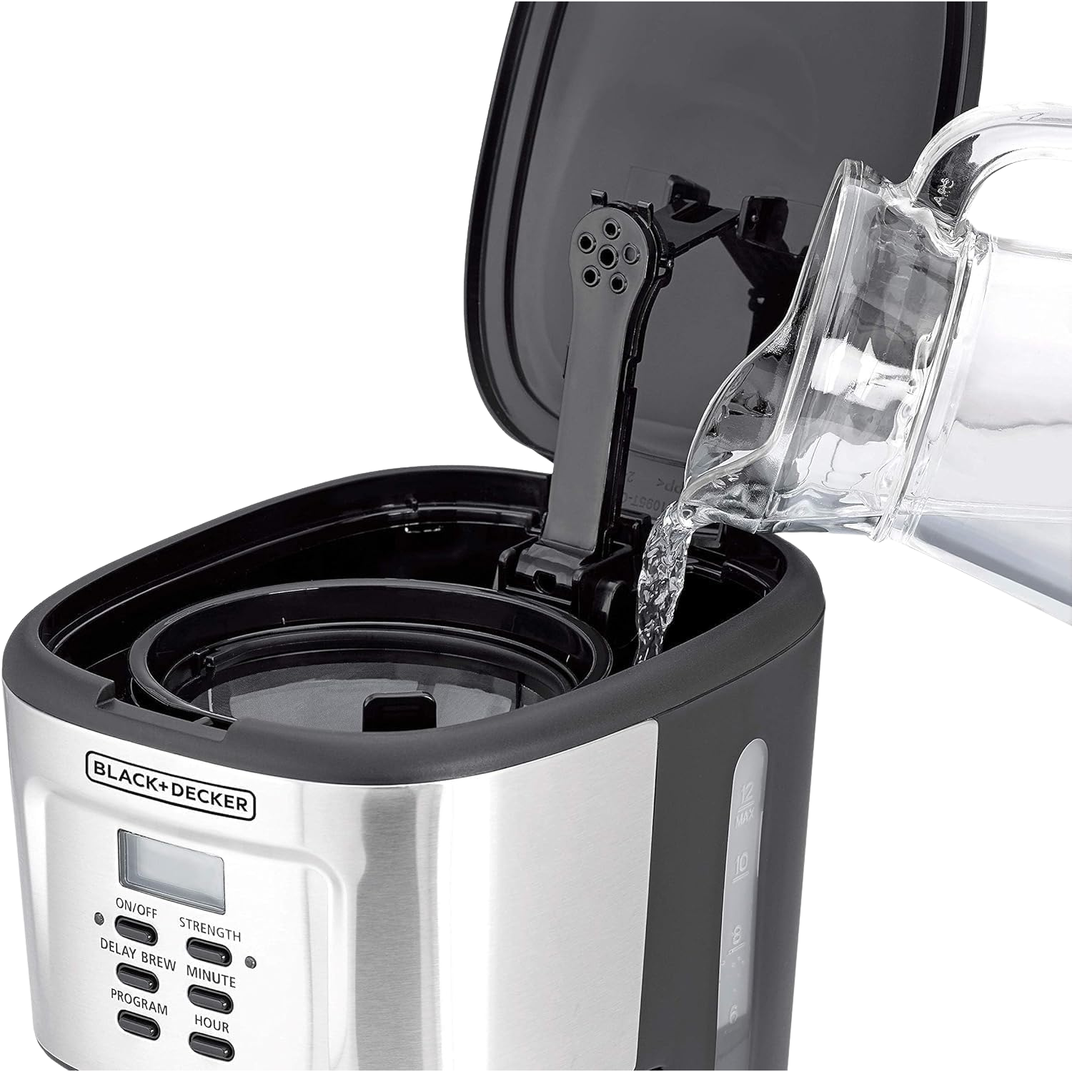 ماكينة صنع القهوة قابلة للبرمجة بشاشة ال سي دي من بلاك اند ديكر DCM85-B5، 900 وات، اسود وفضي، مادة صناعية