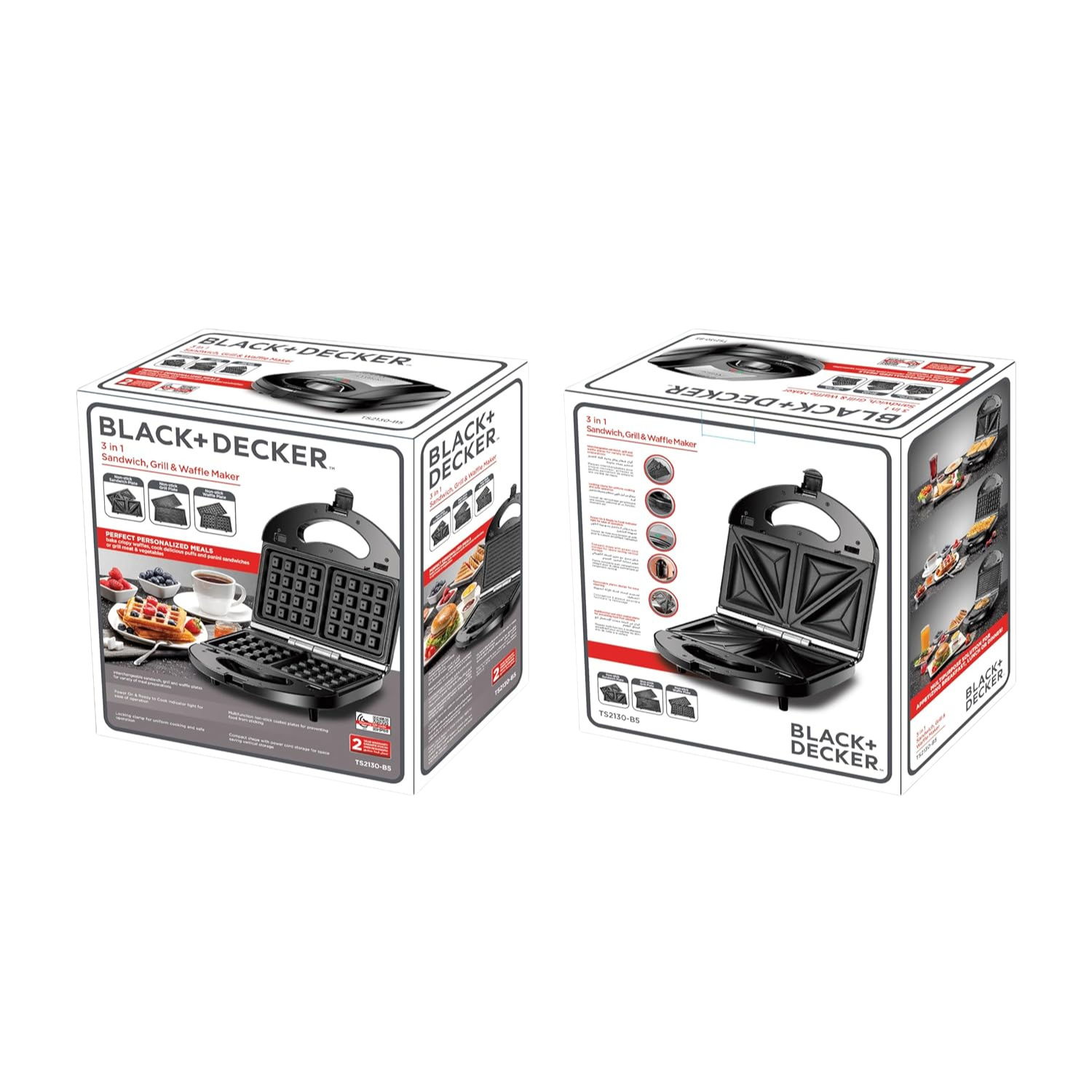 ماكينة صنع الوافل والشواية والساندويتشات 3 في 1 قابلة للتبديل بقدرة 780 واط من بلاك اند ديكر، لون فضي اسود، موديل TS2130-B5