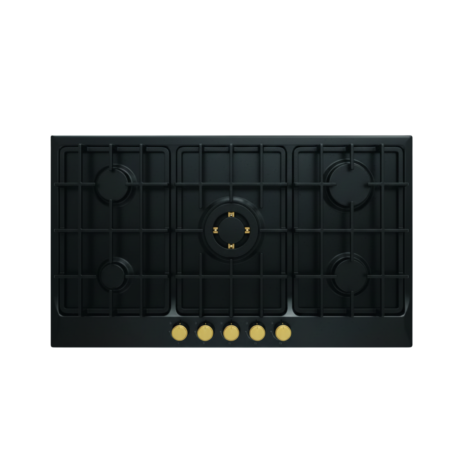 موقد مسطح ستانلس ستيل بلت ان من فريش HAFR90CMBC1/BR، 5 شعلات غاز، 60 × 90 سم – اسود وذهبي