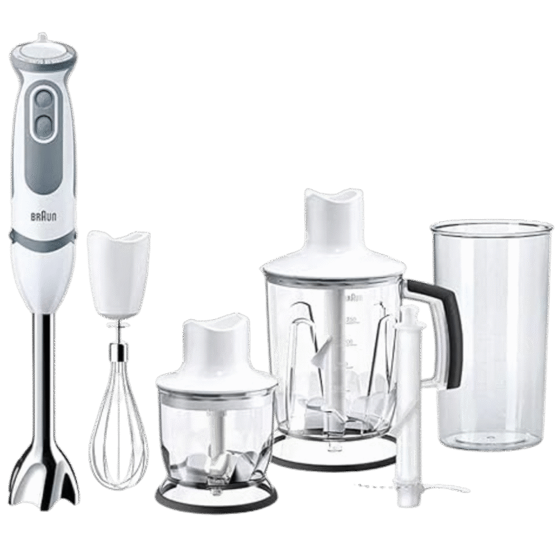 اعمل على تحضير مائدة العشاء بوقت قصير جدا و بسهولة مع خلاط يدوي براون مالتي كويك 7 و استمتع بمهارتك في المطبخ. و تتميز خلاط يدوي براون مالتي كويك 7 بعدة خصائص رائعة و مساعدة مثل ميزة ايزي كليك التي تمكنك من فصل القطع لهذا الخلاط بسهولة لتنظيفه. و يتميز خلاط يدوي براون مالتي كويك 7 بهيكل مقاوم للتلطيخ لتحصل على مطبخ نظيف. ويعمل هذا الخلاط الرائع من براون بمحرك 1000واط لتحصل على اداء رائع في كل الاوقات. ان جميع ملحقات و قطع براون مـصنوعة من بلاستيك خالي من BPA لتحصل على استعمال امن و صحي.